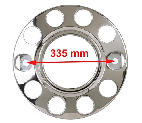 Specification: 2 x universele hoogglans gepolijste roestvrij stalen vrachtwagenwielafdekking in 22,5 inch open~