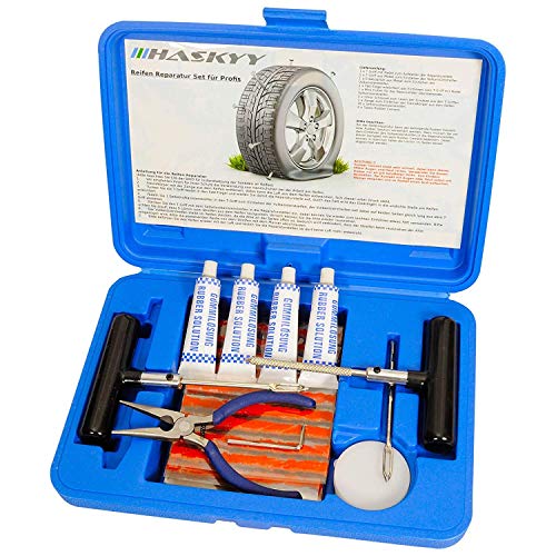 Haskyy – 57-delig Auto-bandenreparatieset voor auto’s, vrachtwagens, motorfietsen, quad, ATV’s, UTV’s, tractoren, grasmaaiers, trucks, jeeps, SUV’s, auto’s, sleeps, trailer, incl. handleiding in 7 verschillende Talen: