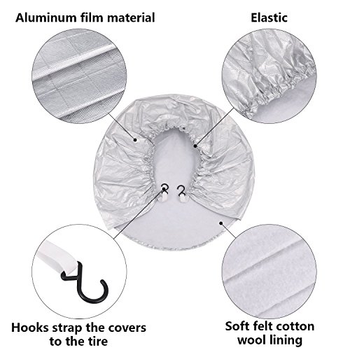 Specification: Aueide Bandenhoezen voor Automobiel Wielset van 4, Camper Auto Band Protector voor 27 “tot 29” Banden Diameters, Waterdichte Sneeuw Sun Tire Protector, Aluminium Film (Bespaar schoonmaken tijd)