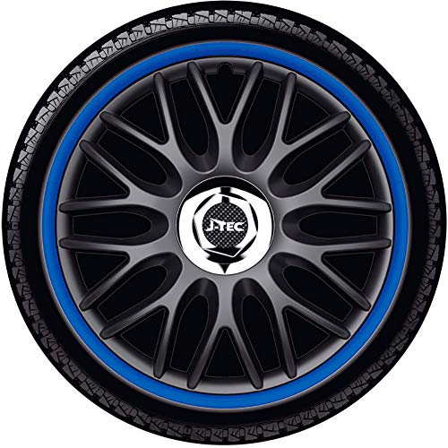 Specification: Set J-Tec wieldoppen R 13-inch zwart/blauw + chroom ringen