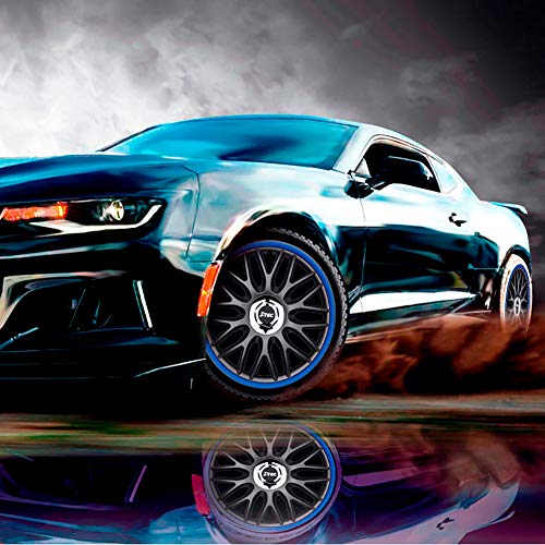 Set J-Tec wieldoppen R 13-inch zwart/blauw + chroom ringen