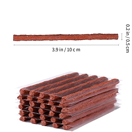 Duurzaam en veilig: de zelfhardende bandreparatietape is niet gemakkelijk te verouderen en is bestand tegen de meest veeleisende reparaties. De spiraalvormige T-greep-sonde en de T-handgreep zijn van rubber bekleed om je banden te beschermen. hand.