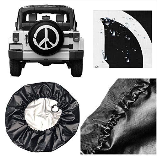 Specification: Vrede Teken Liefde Harmonie Reserveband Covers Drinkbare Dirt Protector Wiel Covers Weerbestendig voor Jeep Trailer RV…