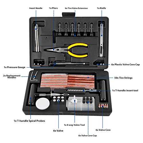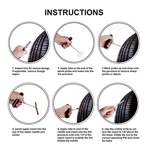 Eenvoudige en snelle reparaties: superieure bruine snaren waar je kunt vertrouwen om de beste veiligheid te garanderen. veel sterker en veel beter repareert dan andere zwarte snaren in andere kits. Elk aspect van de bandenreparatieset is zo ontworpen dat hij sterk is, zodat het de laatste set is die je ooit moet kopen.